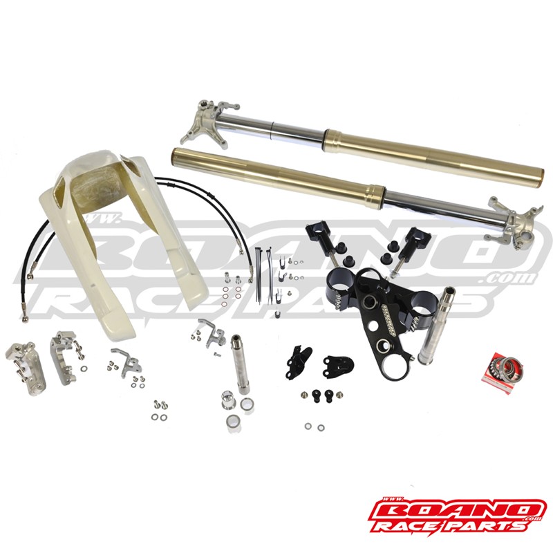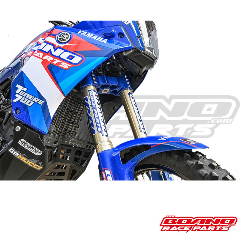 - Vidlice KYB 48mm, v horní části závodních vidlic, s kalibrací vyhrazenou pro T7, progresivní a měkká i pro méně zkušené, externě nastavitelná v kompresi i odskoku. Vyhrazená hladina oleje, nové talíře pružin, patky s přepracovanými podpěrami třmenu; jde o přeměnu produktu Off Road Racing na „Dual“ produkt, se kterým budete moci čelit motoristickému závodu tím nejlepším možným způsobem, ale zároveň se bezpečně bavit na nedělním off Road výletu!!