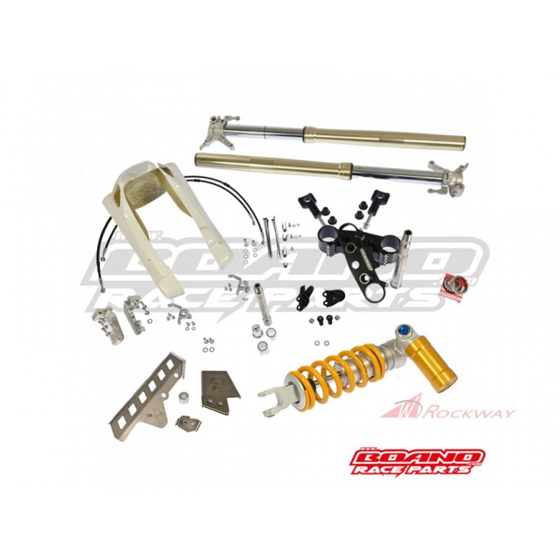 Doporučuje se kombinace s tlumičem Ohlins Rally od Boano (jiné vnitřní části a vyhrazené nastavení + nová velikost spojovací tyče táhla)