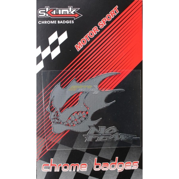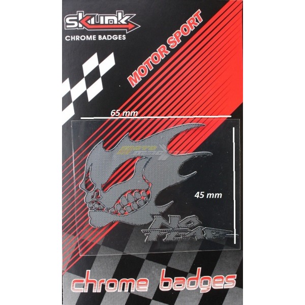 Chromová, kovová samolepka na motocykly, logo No Fear. Vhodná na černý podklad.