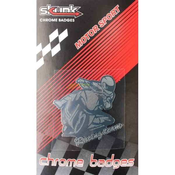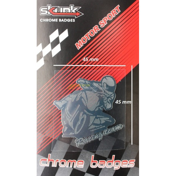 Chromová nálepka MOTORKAŘ na motorku.