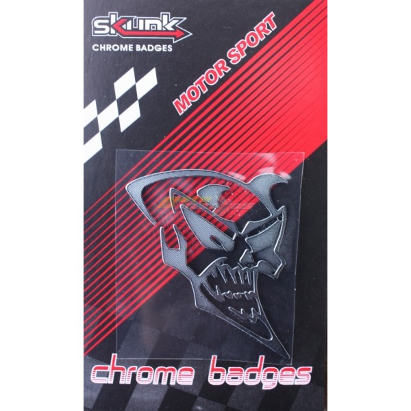 Chromová nálepka LEBKA na motorku.