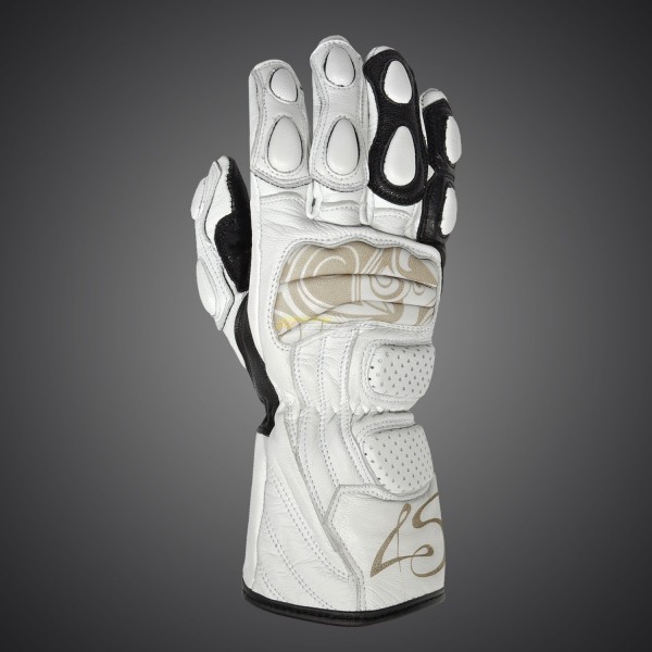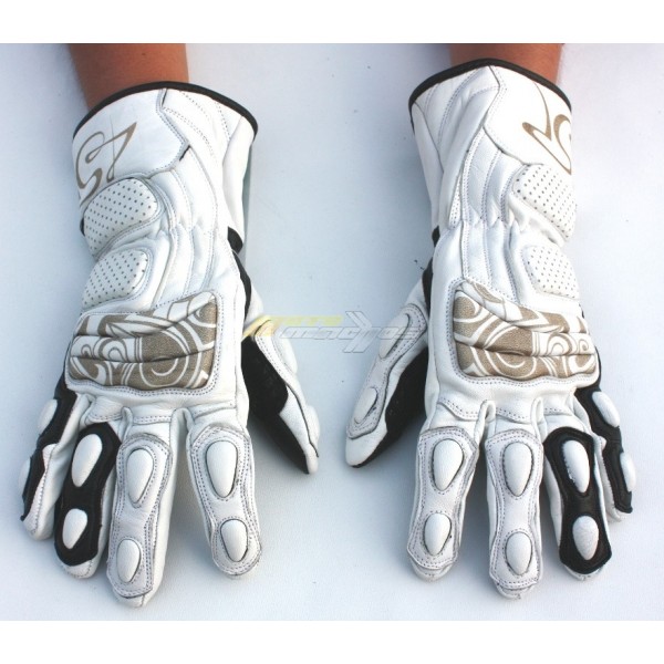 Kožené dámské rukavice na motorku. Bílé vel L.