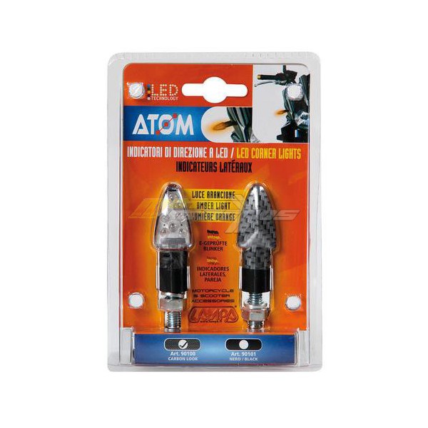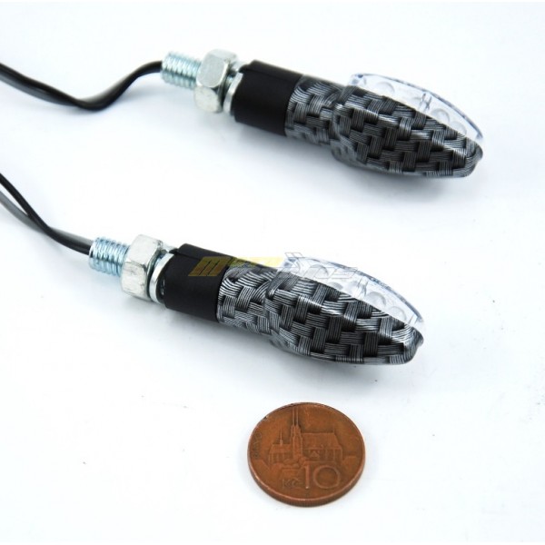 Led blinkr na motorku Atom Carbon, cena za 1 pár. Uchycení M8. Provedení Carbonové.