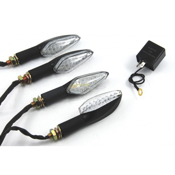Sada led blinkrů za TOP cenu. Provedení plastové, homologováno pro silniční provoz. Cena za 4 ks blinkrů + Led přerušovač, 4 ks, krátká noha.