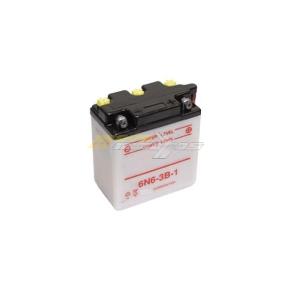 Klasická šesti voltová olověná baterie. Dodává se v suchém, nenabitém stavu. Pro uvedení do provozu je nutné ji naplnit elektrolytem do úrovně mezi rysky a poté nabít do plné kapacity. Upozornění: baterii nabíjíme maximálně 1/10 hodnoty jejího jmenovitého proudu, jinak hrozí její zničení!