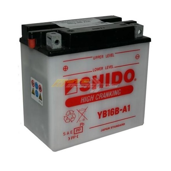 Klasická olověná baterie. Dodává se v suchém, nenabitém stavu. Pro uvedení do provozu je nutné ji naplnit elektrolytem do úrovně mezi rysky a poté nabít do plné kapacity. Upozornění: baterii nabíjíme maximálně 1/10 hodnoty jejího jmenovitého proudu, jinak hrozí její zničení!