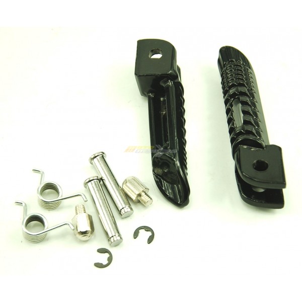 Přední stupačky Suzuki GSXR 600/750/1000, materiál Dural, pasují i na jiné typy motocyklů Suzuki, barva černá. Cena za 1 pár včetně pružinek a podložek.