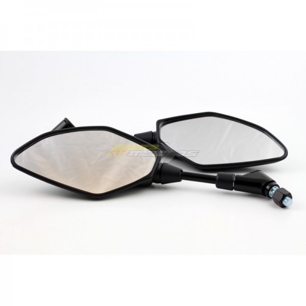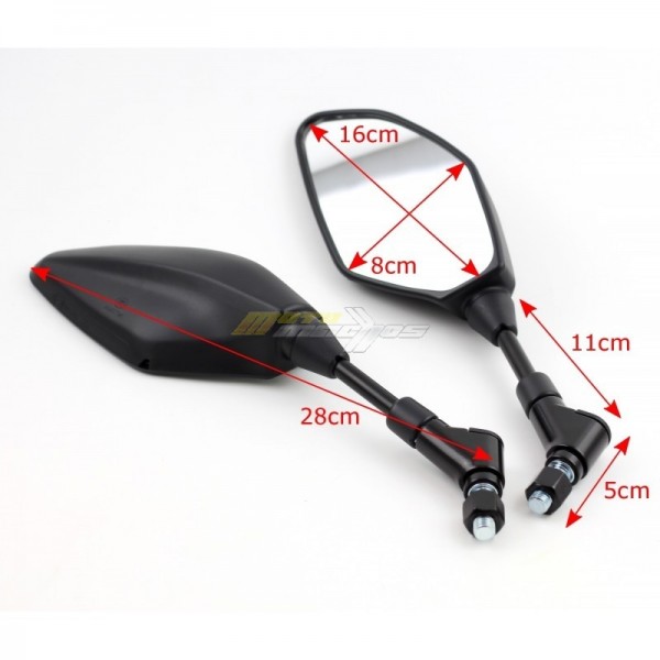 Univerzální zrcátka styl Yamaha, pasují na většinu modelů motocyklů všech značek. V příbalu redukce na uchycení 2xM8, 2xM10, 1xM10 levotočivý závit (1,25mm). Homologované pro silniční provoz. Cena za 1 pár.