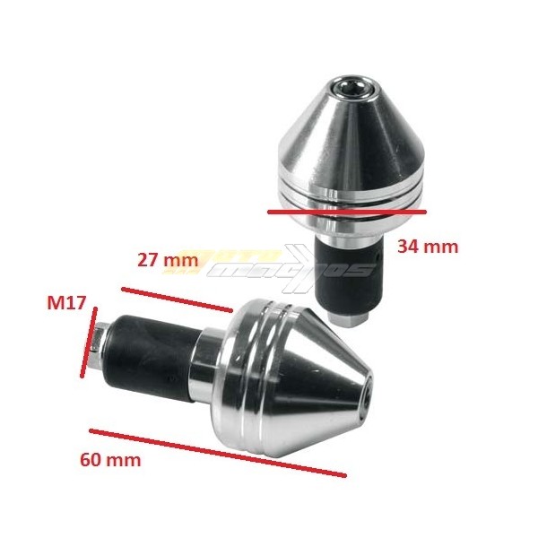 Univerzální závaží do řidítek pro motorky, YAMAHA, HONDA, SUZUKI, KAWASAKI a jiné... Uchycení do řidítek 13-17 mm. Materiál Dural, barva stříbrná, cena uvedena za 1 pár závaží. Hmotnost 75 g.