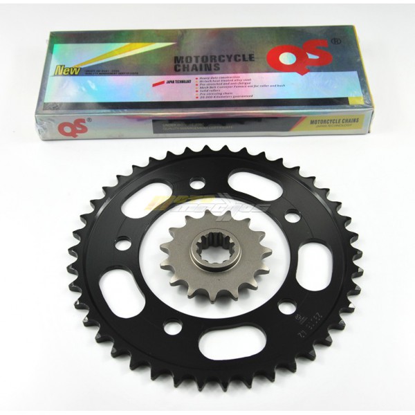 Řetězová sada, pro motocykly Honda CB 600 F Hornet, 1998-2006, Hornet. Řetěz značky QS 525 / 120 článků, O ring, spojka nýtovací. Přední kolečko 15 zubů a zadní rozeta 42 zubů. Cena za celý set.