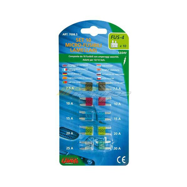 Pojistky mečové, micro, Lampa 70085, sada obsahuje 2x 7,5, 2x 10, 2x 15, 2x 20, 1x 25, 1x 30. Cena za kompletní balení.