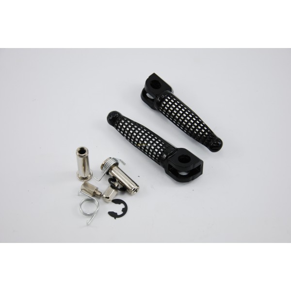 Přední stupačky na Kawasaki ZX 10 R, a jiné. Cena uvedena za 1 pár, včetně čepů a pružinek. Barva černá. Pasují i na Z 1000, Z 800.