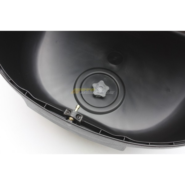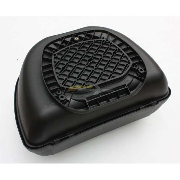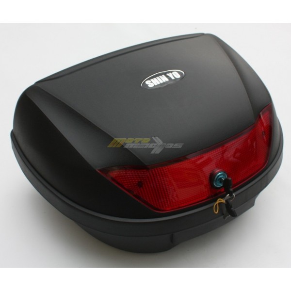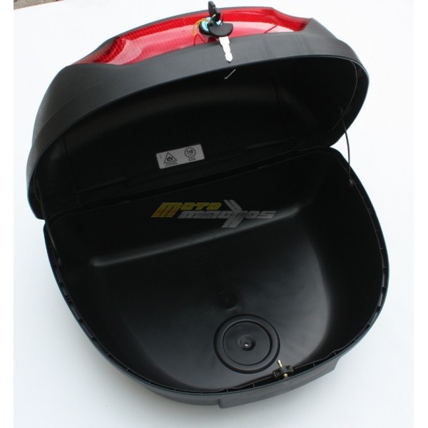 Plastový kufr na motocykl, objem 48 L, bez problémů pojme 2 přilby. Ke kufru je plastová plotna, 2 klíče.