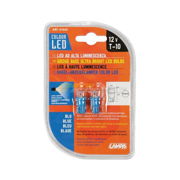 Žárovka T-10 12V Led-blue, Lampa 91545, cena uvedena za 2 ks. Pozor svítí modře.