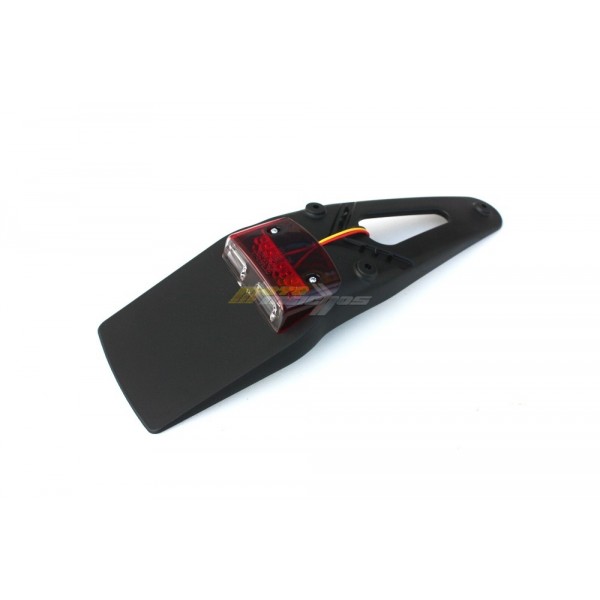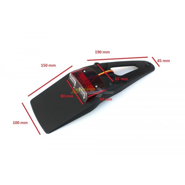 Zadní podblatníček na endura, pasuje na většinu Endur, YAMAHA, SUZUKI, HONDA, KAWASAKI a jiné. Světlo obsahuje potkávací i brzdové. Homologováno pro silniční provoz. Cena za celý komplet.