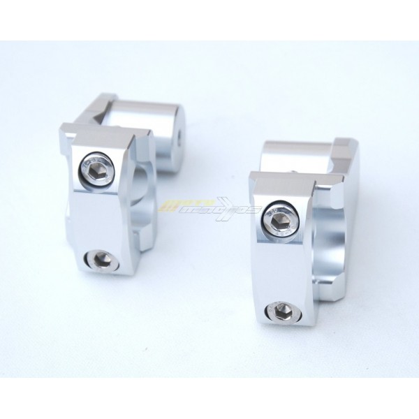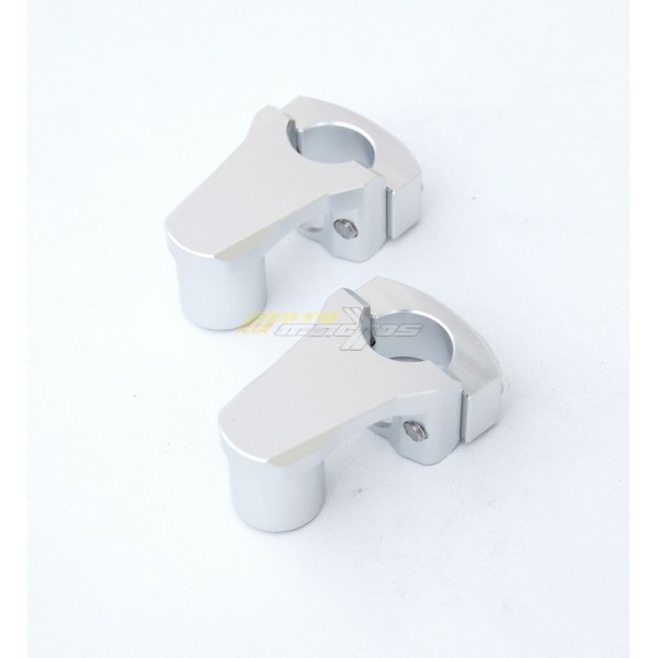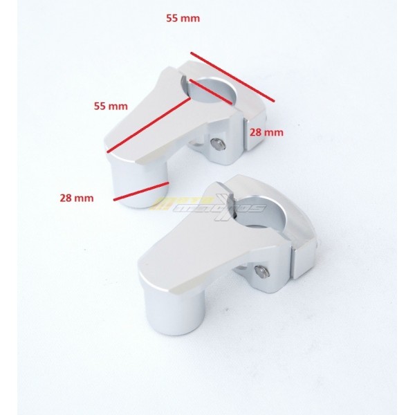 Redukce navýšení řidítek pro motocykly, navýšení z 28,6 mm na 28,6 mm o cca 50 mm, polohovatelná pozice umožní jezdci si nastavit řidítka tak jak mu nejvíc vyhovují. Provedení CNC, materiál Dural T6, cena za 1 pár.