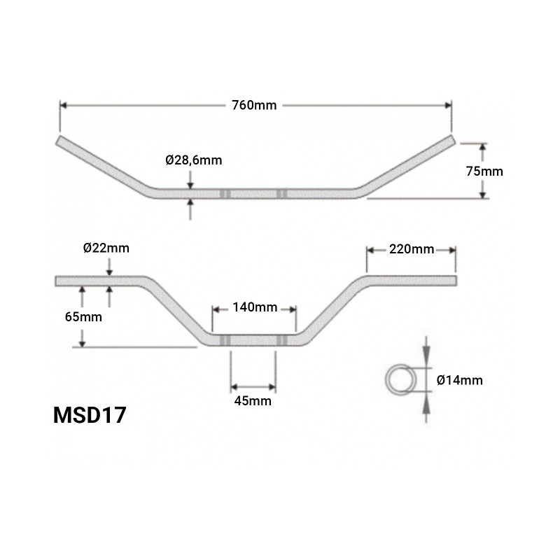 Šířka řídítek 760 mm, výška 70 mm, zahnutí 80 mm.