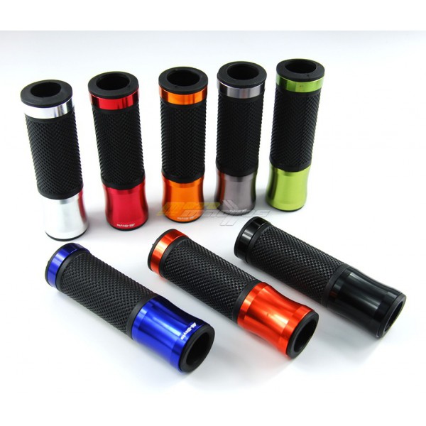 Eloxové rukojeti na motorku COLOR, jednoduché, pěkné, univerzální rukojeti. pasují na většinu motocyklů, průměr 22 mm levá strana a pravá 25 mm skrz plyn, délka 120 mm. Různé barvy, cena uvedena za 1 pár.