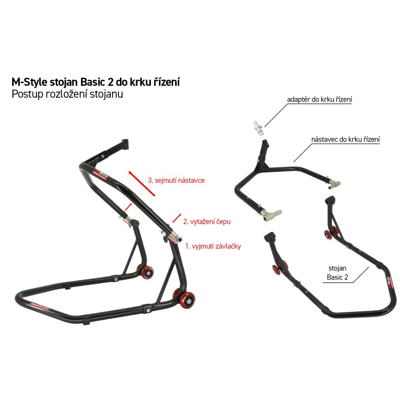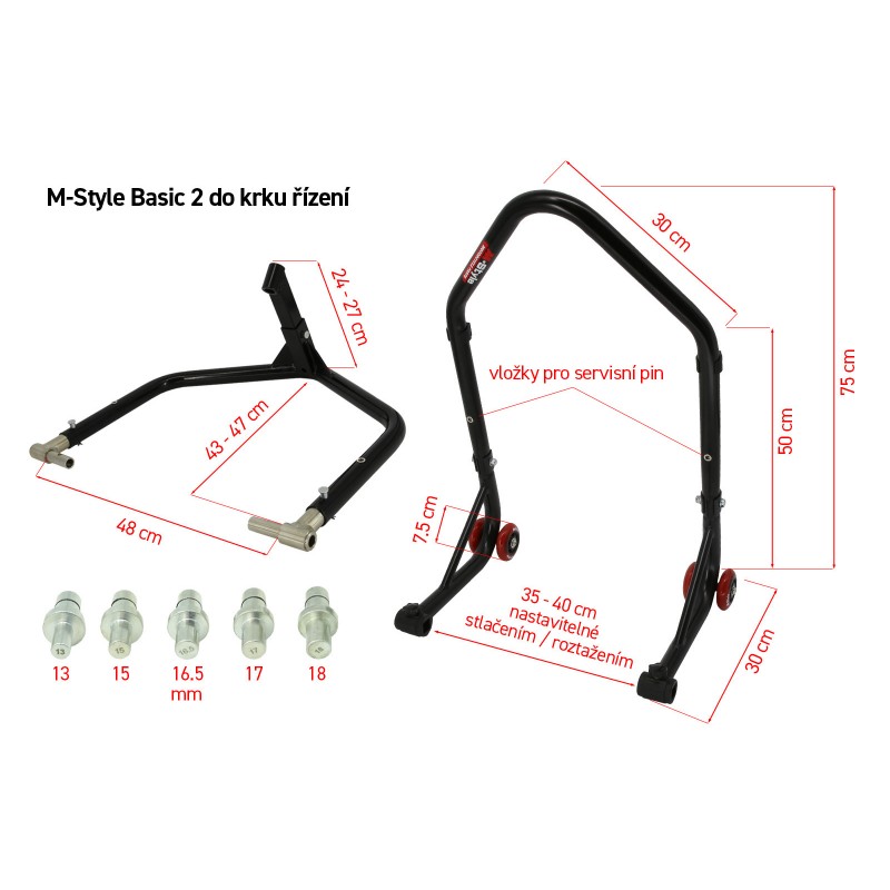 Univerzální moto stojan do krku řízení. Pasuje na většinu motocyklů.