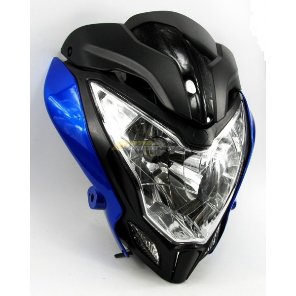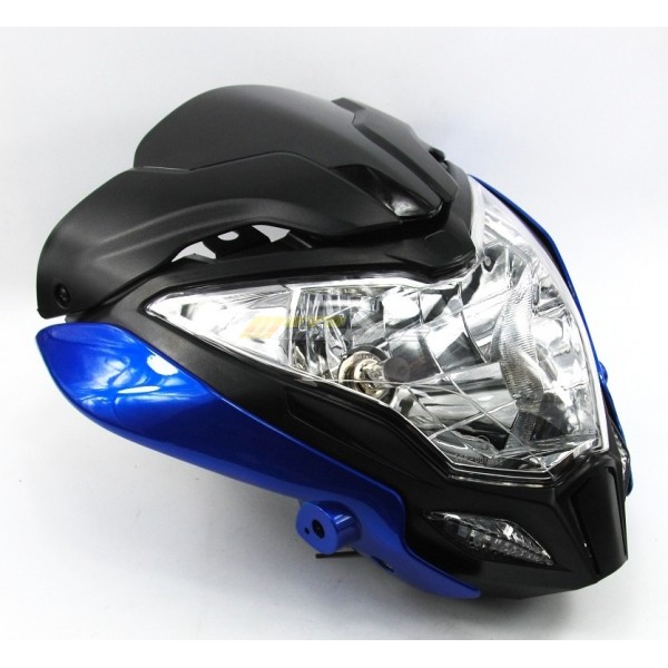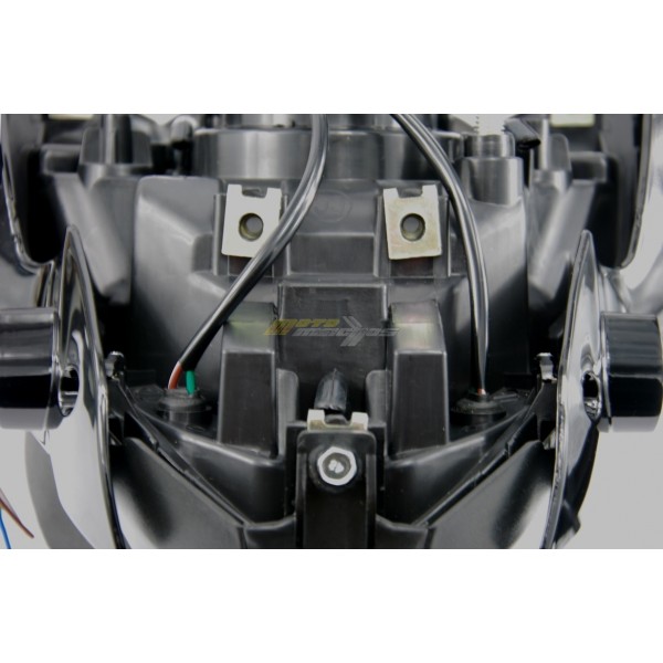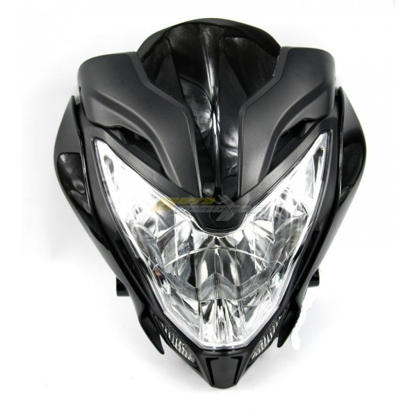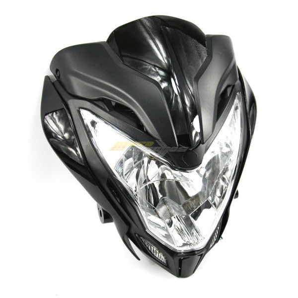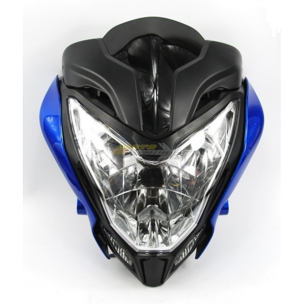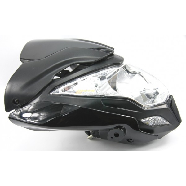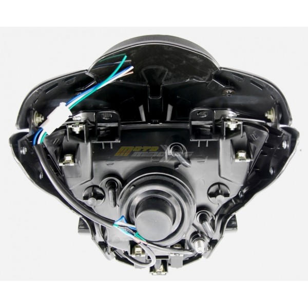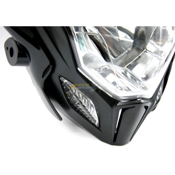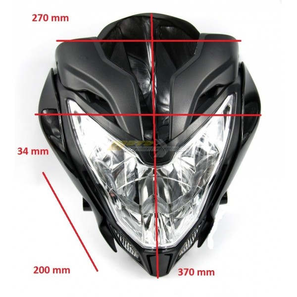 Univerzální přední světlo na motocykly. Vhodné na stavby streety a jiné. Perfektní provedení, skvělá svítivost, led parkovací žárovky, přední žárovka H4 12V 35/35W. Masivní úchyty k přichycení, kouřové plexi. Homologovaná pro silniční provoz. Cena za 1 ks.