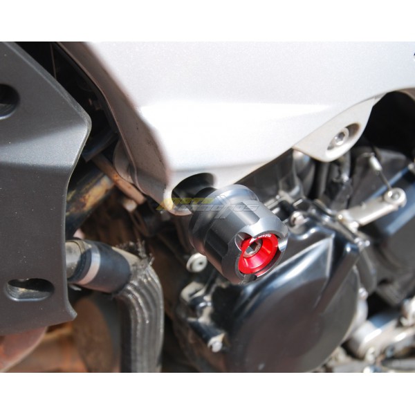 Padací protektory na Suzuki GSR 600, provedení Silon/Dural. Různé barevné provedení, cena uvedena za 1 pár včetně šroubů.