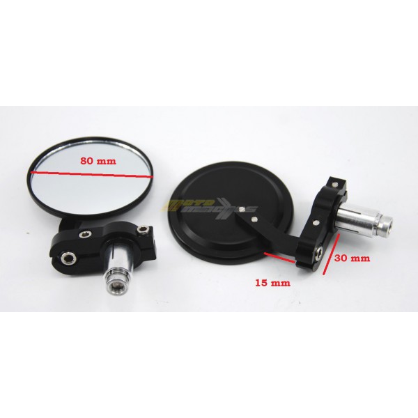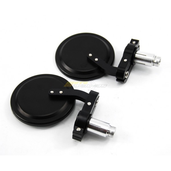 Univerzální zrcátka Retro, do řidítek na motocykly. Pasují na přůměr díry 13-17 mm. Cena uvedena za 1 pár. Provedení černé.