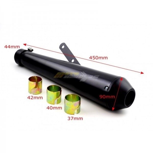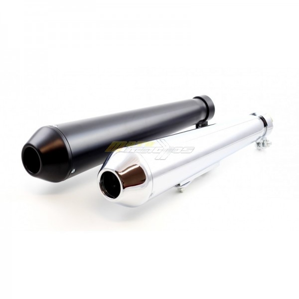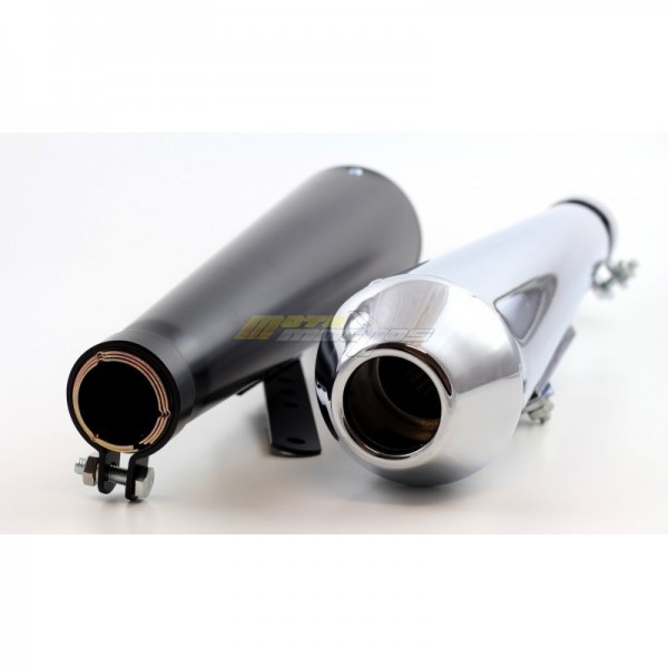 Univerzální Retro koncovka výfuku na naháče nebo stavby, vhodné i na choppery a retro motocykly.