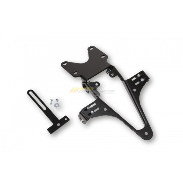 Univerzální držák pro SPZ motocyklů, nastavitelný sklon. Materiál Ocel. Cena za 1 ks.