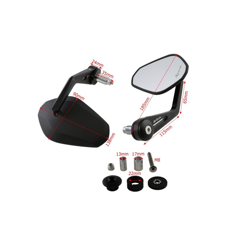 M-Style Grave cafe racer zrcátka s vážítkem do řídítek na motocykl