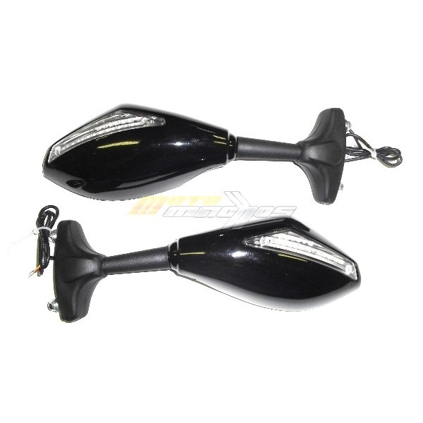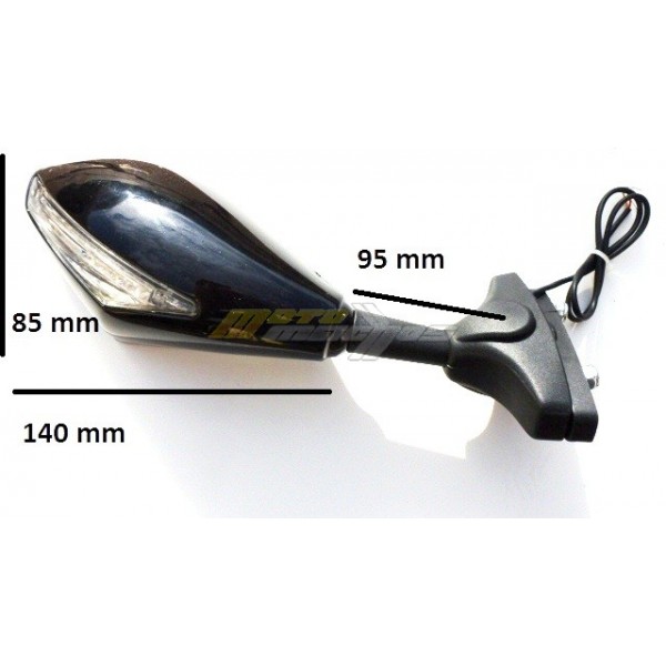 Univerzální zrcátka s led blinkrem, pasují na motorky co mají kapotáže. Univerzální uchycení pasuje na většinu motocyklů všech značek, Yamaha, Honda? Suzuki, Kawsaki, KTM, Triumph a jiné. Cena je uvedena za 1 pár zrcátek.