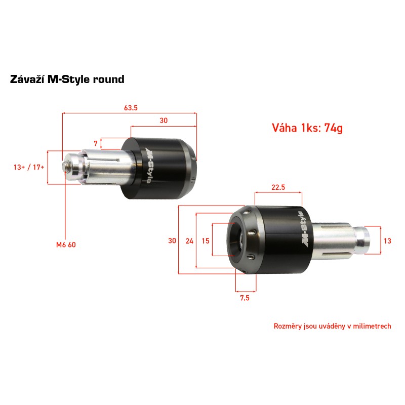 Round závaží / vážítka do řídítek na motocykl