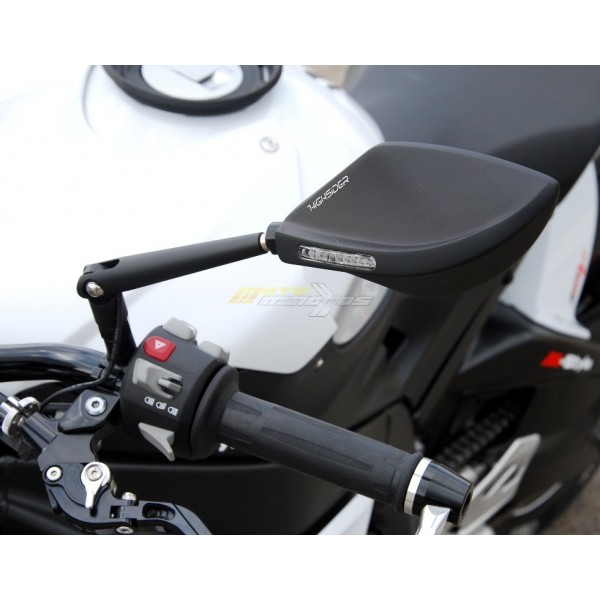 Tuningová, univerzální zrcátka s led blinkrem. Vhodné na různé naháče a stavby, perfektní svítivost led blinkrů splňují Homologaci. Materiál Dural, povrchová ůprava Elox. Černé matné. V balení redukce pro přichycení. Cena uvedena za 1 pár.