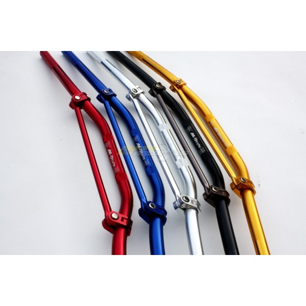 Duralové řidítka s hrazdou na motorku, čtyřkolku nebo skůtra. Materiál tvrdostní dural, perfektní zpracování. Různé barvy, vroubkování v úchytu proti protočení. Cena za 1 kus včetně hrazdy.